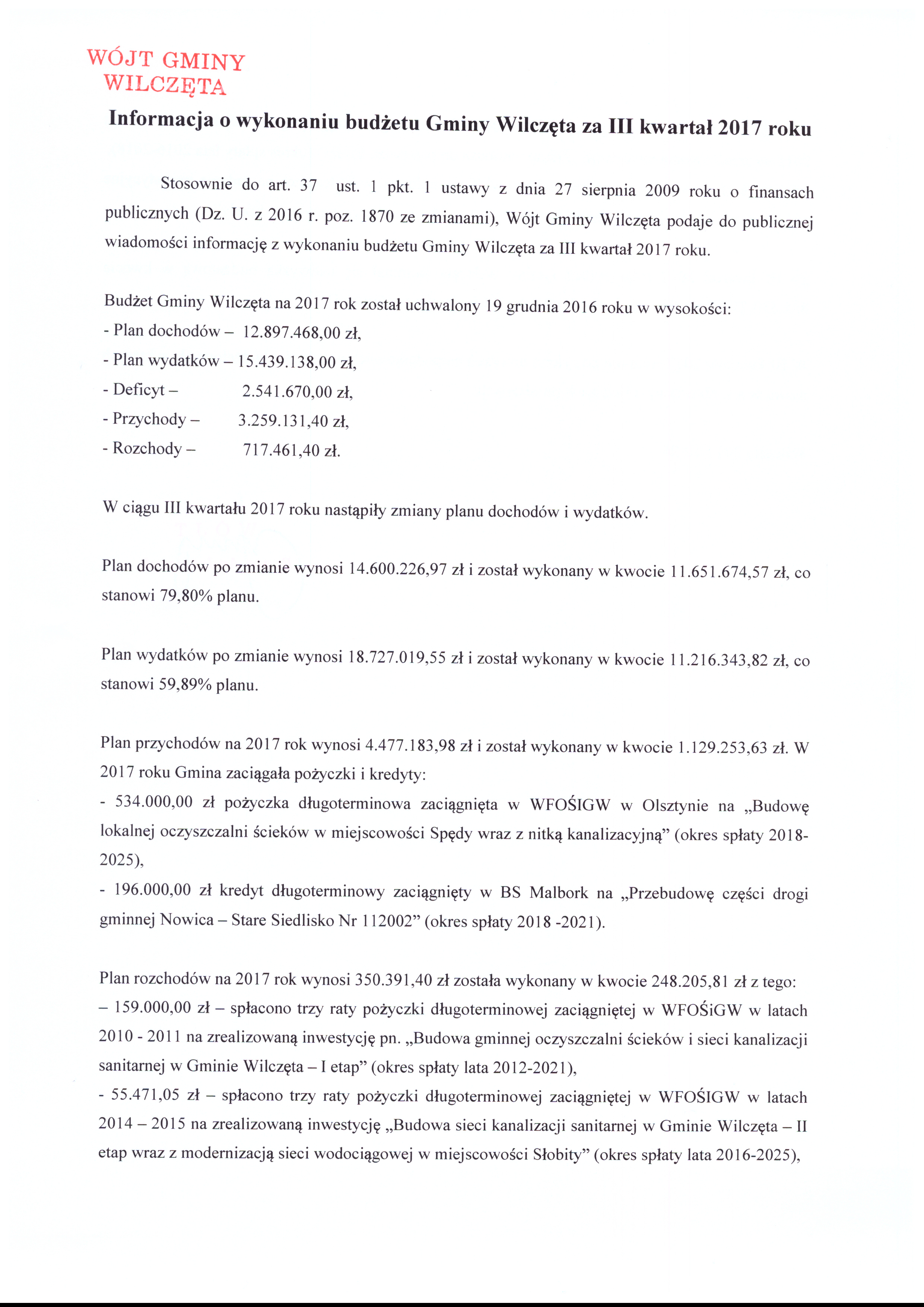 W załączeniu sprawozdanie a wykonania budżetu za III kw. 2017 r.