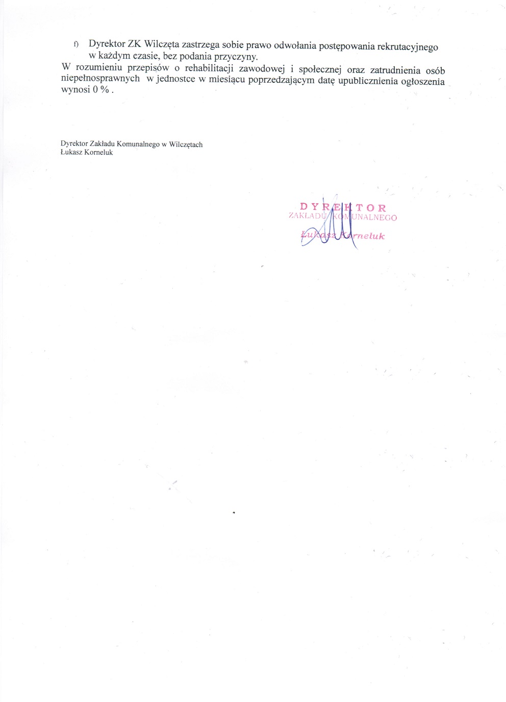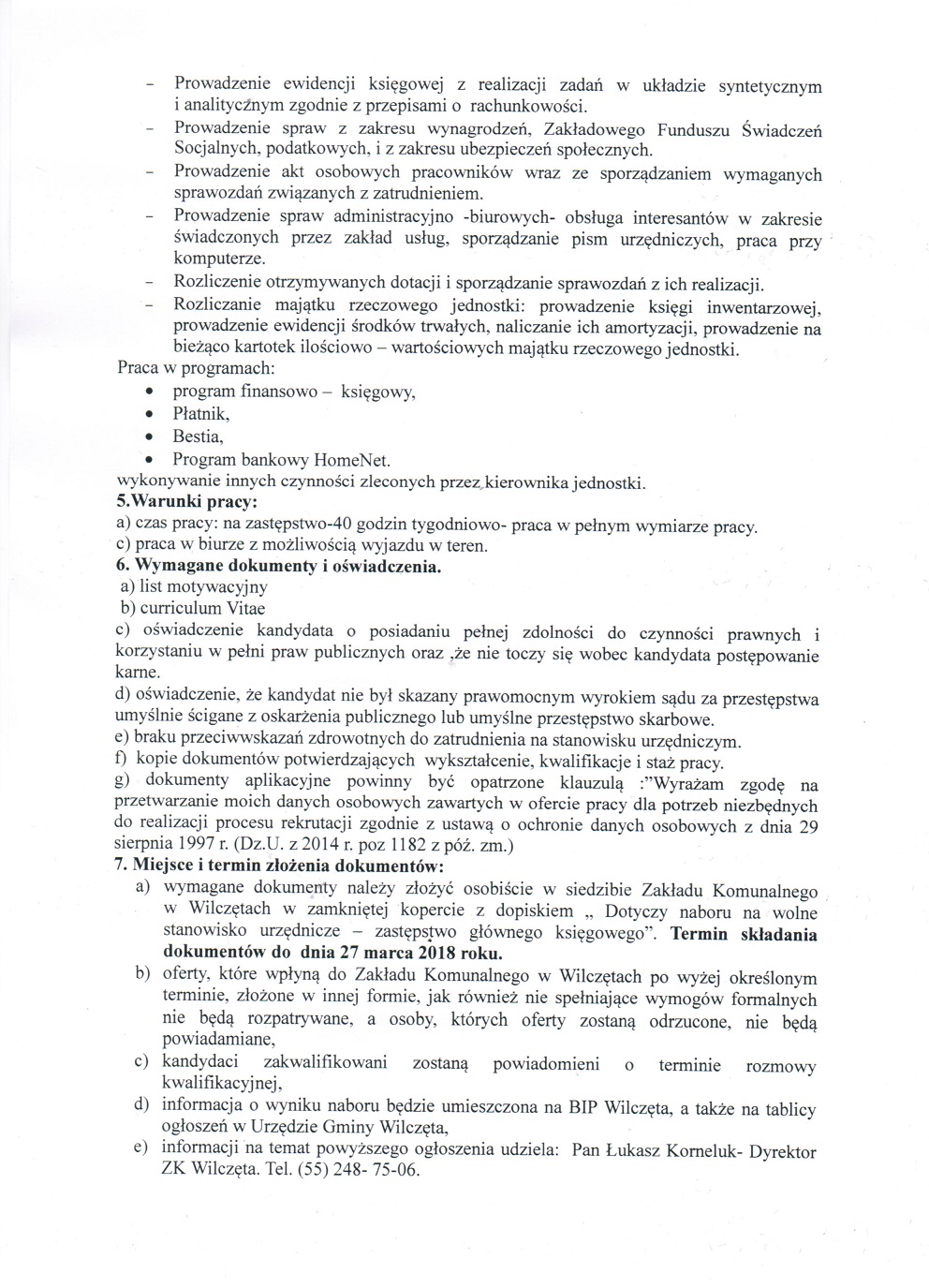 Zakład Komunalny w Wilczętach ogłasza kolejny nabór na zastępstwo Głównego Księgowego.